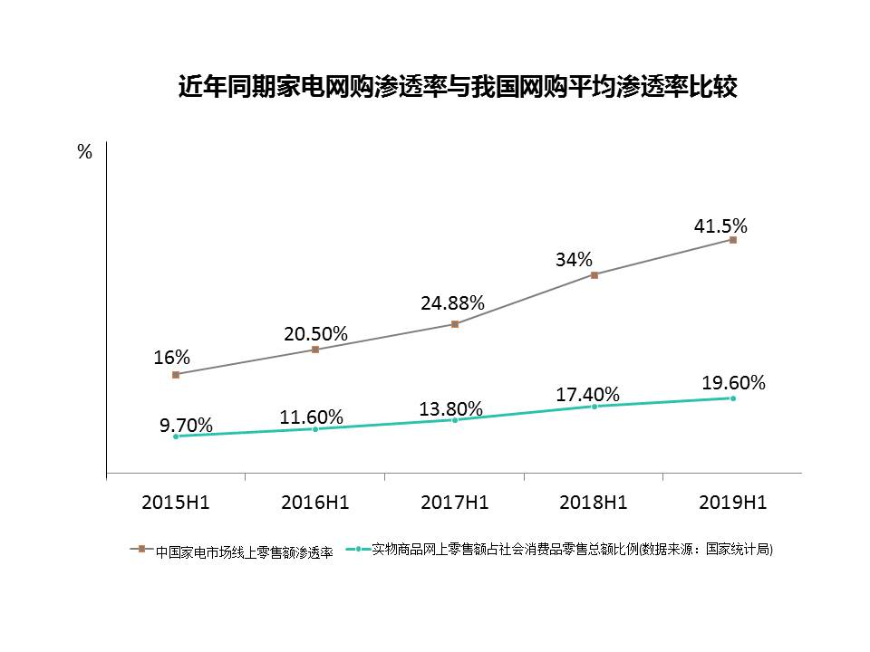 在以消費升級拓寬市場“廣度”的同時,2019年上半年,以電商渠道為牽引,中國家電行業在深耕村鎮級市場、加大市場深度方面成效顯著。《報告》顯示,2019年上半年,中國家電網購零售額中來自村鎮級市場的尚不到20%,但是增幅達到96%,遠高于上半年中國家電網購市場19%的增長水平,以上半年“6·18”為節點,村鎮級市場家電網購全面爆發,為低迷的家電市場注入了動力。
